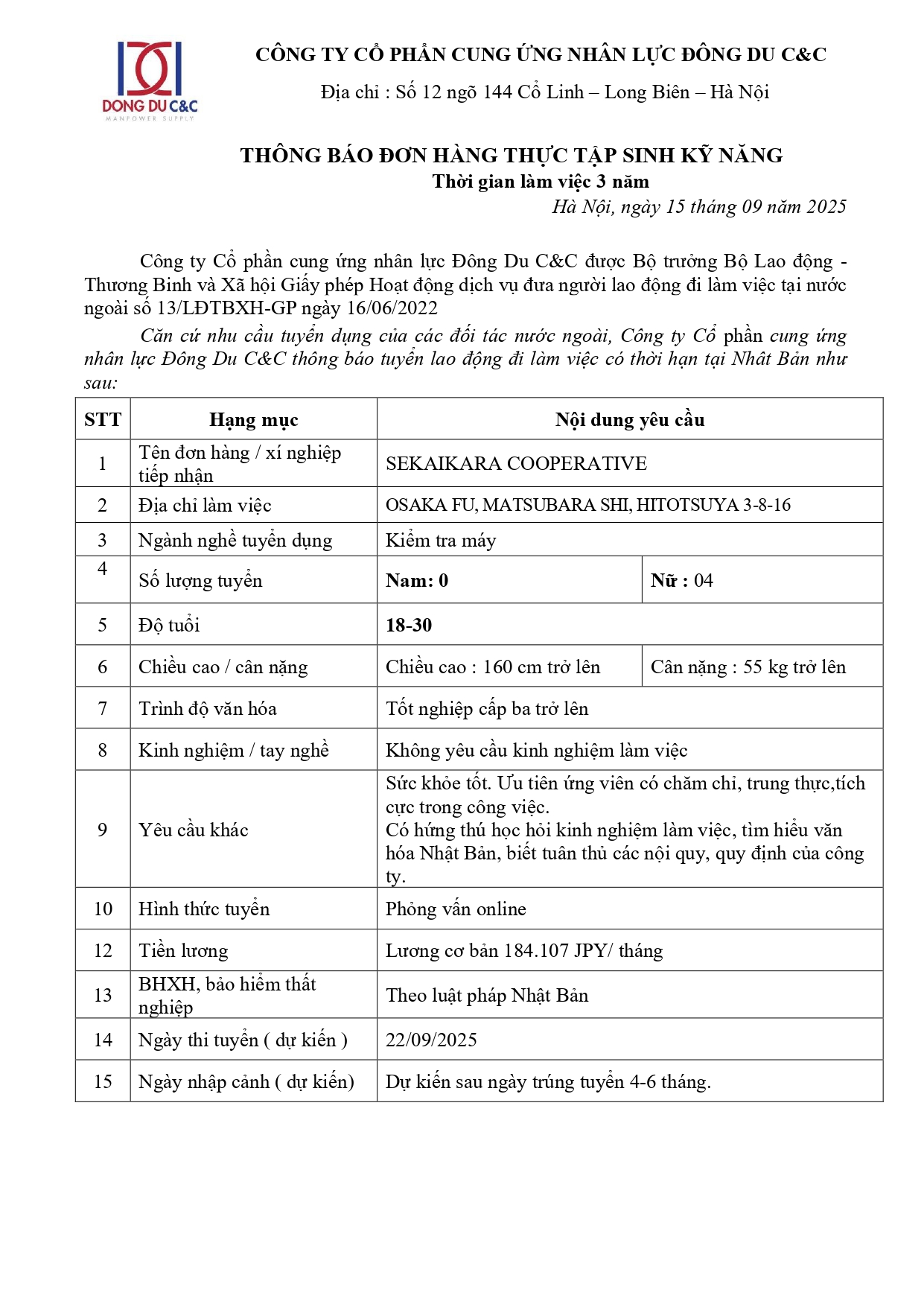 CÔNG TY CỔ PHẦN CUNG ỨNG NHÂN LỰC ĐÔNG DU C&CCÔNG TY CỔ PHẦN CUNG ỨNG NHÂN LỰC ĐÔNG DU C&C