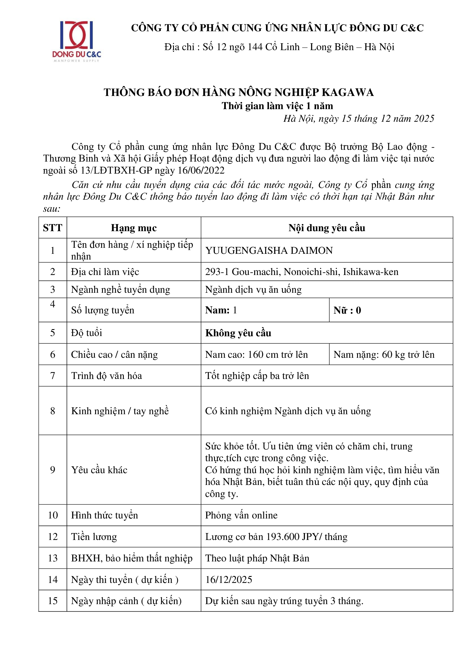 CÔNG TY CỔ PHẦN CUNG ỨNG NHÂN LỰC ĐÔNG DU C&CCÔNG TY CỔ PHẦN CUNG ỨNG NHÂN LỰC ĐÔNG DU C&C