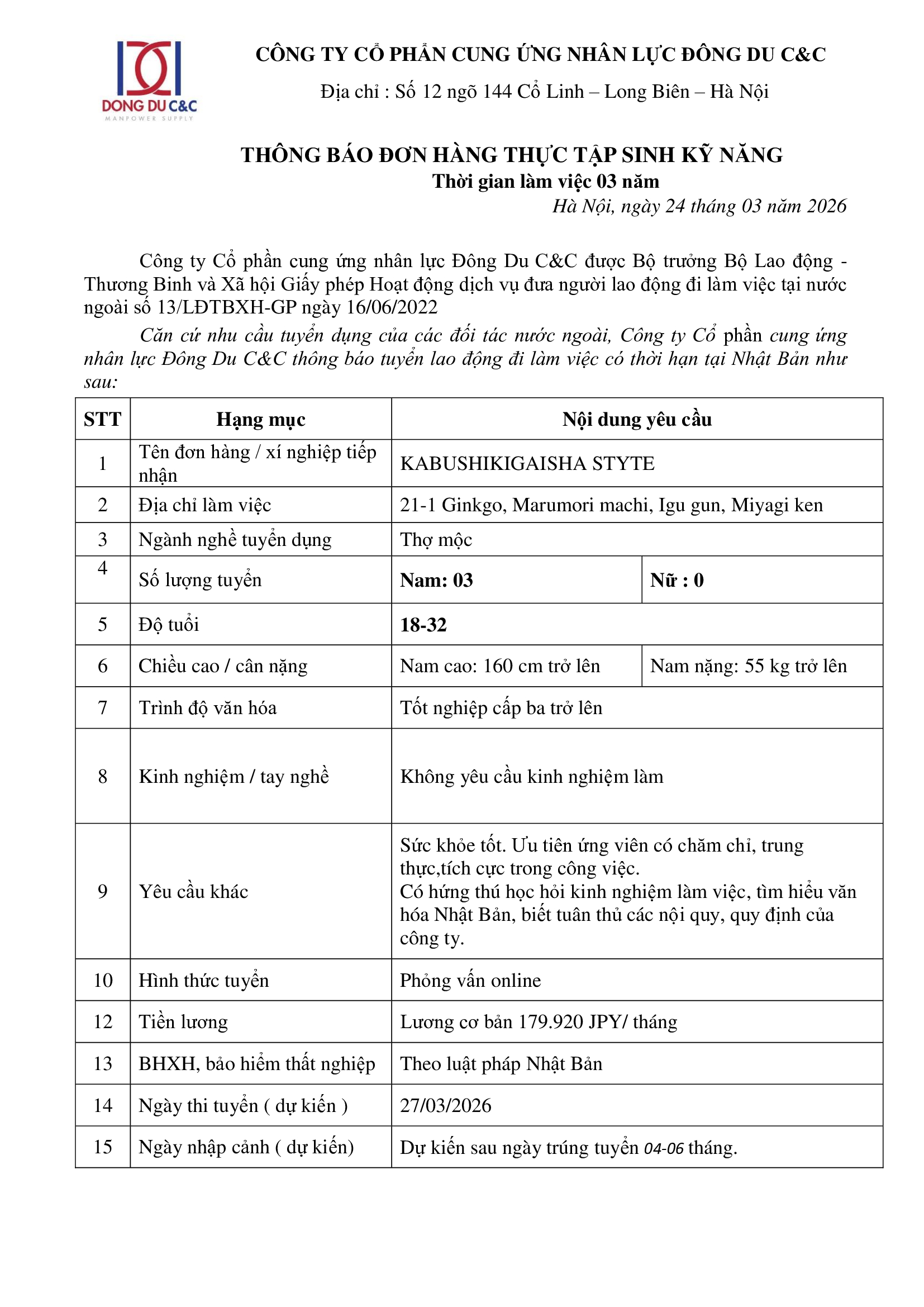 CÔNG TY CỔ PHẦN CUNG ỨNG NHÂN LỰC ĐÔNG DU C&CCÔNG TY CỔ PHẦN CUNG ỨNG NHÂN LỰC ĐÔNG DU C&C
